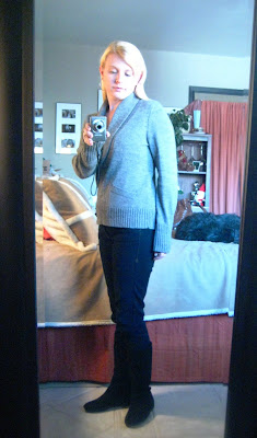 AND - the reason you are seeing me playing with my camera's self-timer for the first time EVAH, is because my dressing room is once again a construction zone while The Hub has new closet floors installed (you see the level of the obsession now? Scary.) So no mirror for me. And VERY limited access to my clothes. :(